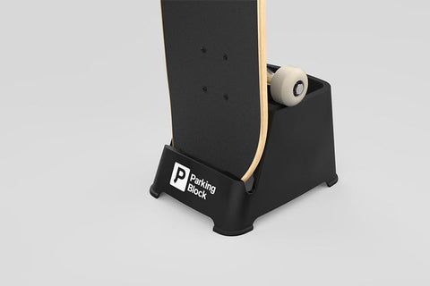 Keep the wheels off the floor, away from the wall: The Parking Block Skateboard Stand